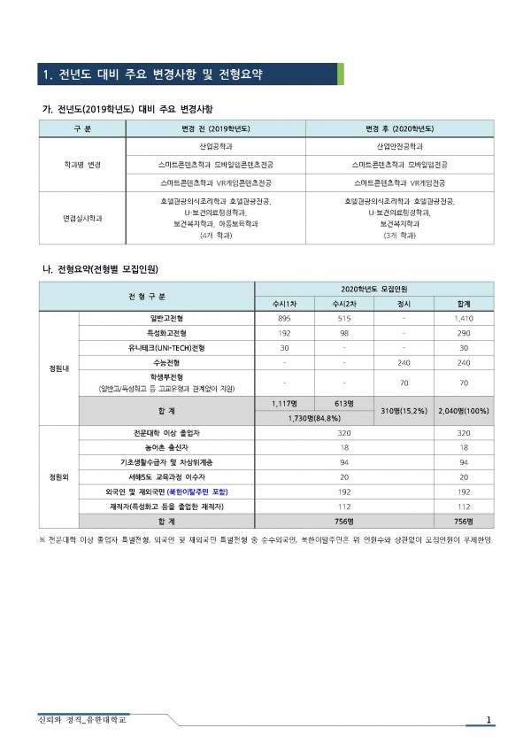 [부천] 유한대학교 정보통신공학과 정보통신전공 신입생(정시) 모집 > 정보마당