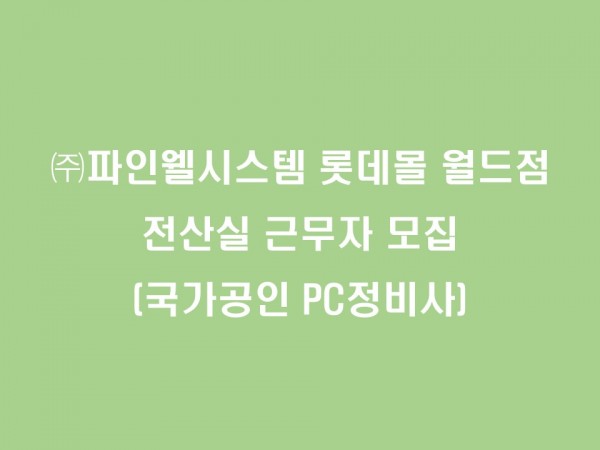 ㈜파인웰시스템 롯데몰 월드점 전산실 근무자 모집(PC정비사)