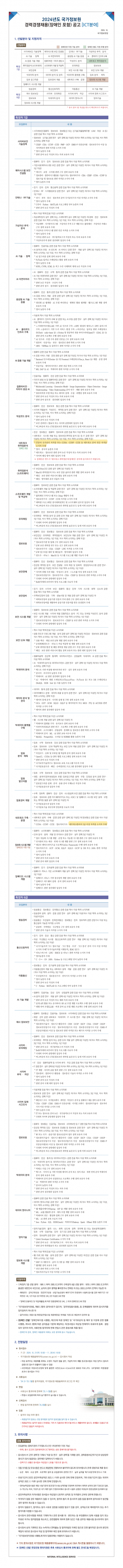 2024년도 국가정보원 경력경쟁채용(장애인 포함) 공고 [ICT분야]