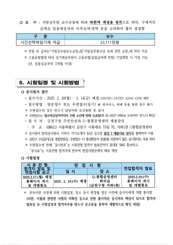 [서울특별시 금천구 시간선택제임기제공무원(마급, CCTV 관제) 채용공고]