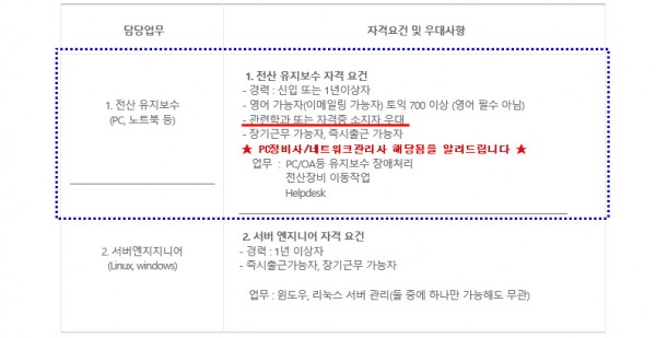 | [채용공고] JMPKOREA 전산유지보수 채용(PC정비사/네트워크관리사) | |