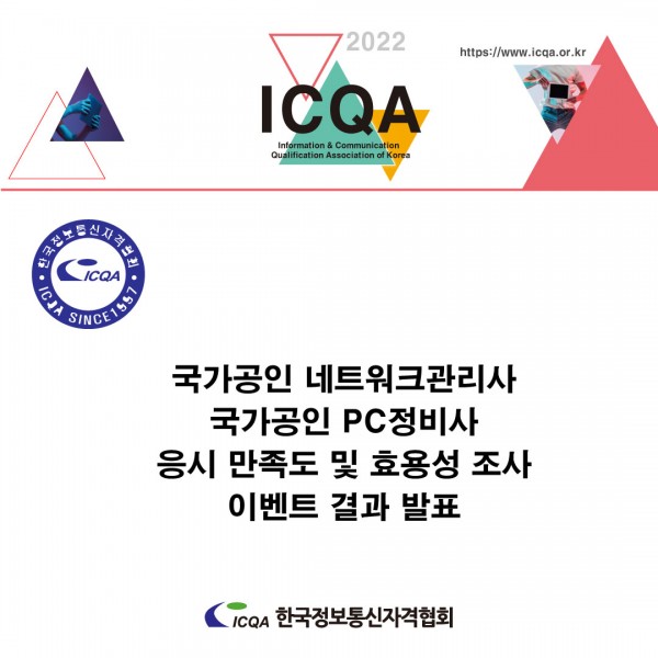 | [ICQA 국가공인 네트워크관리사/국가공인 PC정비사 응시 만족도 및 효용성 조사] | |